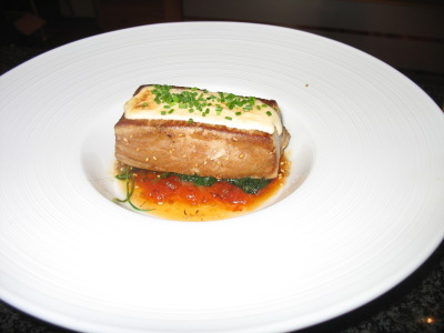 Tataki de atún con espinacas, sésamo y confitura de tomate