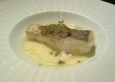 Realizaremos el montaje haciendo una buena base de parmentier de patata y seguidamente aliñaremos con el aceite de trufa. Marcaremos al momento las merluzas, empezando por lograr una piel crujiente y dorada y terminando con una cocción suave en el interior. Salvo petición expresa del cliente, debemos dejar el pescado un poquito crudo, bien jugoso en el interior.