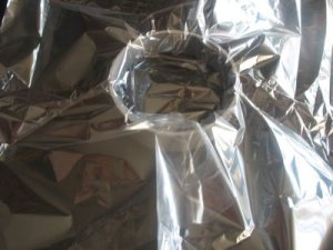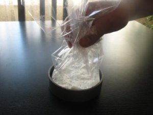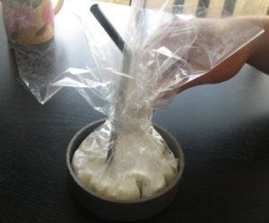 Cerrar el sifón y guardar en frío hasta el momento de montar las bolsitas. Antes de empezar el montaje debemos prepararnos el material necesario, indicado en el escandallo de la receta. El papel de celofán lo cortaremos aproximadamente a unas dimensiones de 40x40 cm.