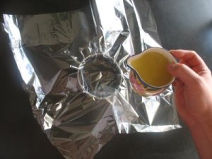 En el centro de la lámina del papel colocaremos el aro patrón, logrando así un espacio en el que poder rellenar de forma cómoda las bolsitas.
