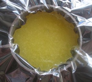 Con la ayuda de una jarrita rellenaremos 2/3 partes del molde con el gelificado de piña.