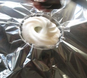 Seguidamente sacamos el sifón de la nevera y le incorporamos las cargas de gas. Rellenamos el resto del molde con la espuma de coco