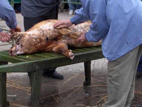 Hay que resaltar que los métodos han cambiado en su inicio, ya que al cerdo se le mata de forma que no sufre durante el resto de la matanza. Comprendo a los defensores de animales, pero se trata siempre de hacerlo lo mejor para el animal, siempre que su fin sea su consumo.