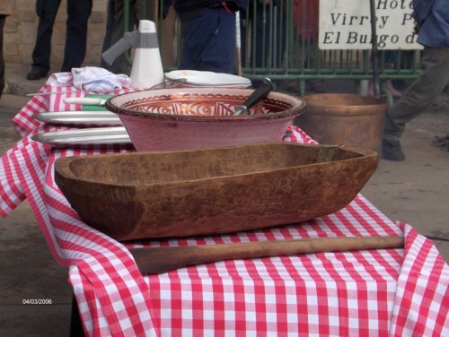 Seguidamente al cerdo se le coloca sobre una mesa especial de trabajo y con la ayuda de unos trozos de teja y agua caliente se procede a rasparlo y lavarlo, se le limpia bien hasta que quede blanco.
