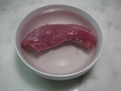 10. Hacer una salmuera con un 5% de sal y un 3% de azúcar, dejar el solomillo sumergido en la salmuera en la nevera durante 1 hora