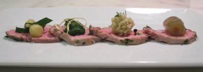 Solomillo de cerdo a baja temperatura al tomillo limón con espinacas en cuatro texturas