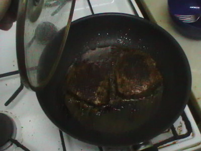 4)- La vamos haciendo, dándole la vuelta a intervalos de 5 minutos, hasta que esté a nuestro gusto. El tiempo dependerá de cómo nos guste de hecha. A los que les guste muy hecha, como a mí, sería unos 15 minutos.