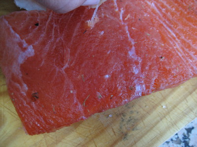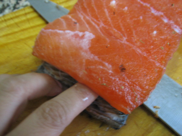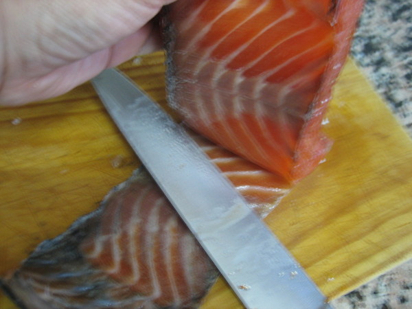 El salmón ha de ser grande para que salga mucho mejor y más rico, además de ser más jugoso por la grasa que tiene. La parte que a mi más me gusta es la zona central, ya que todas sus partes son igual de gruesas.