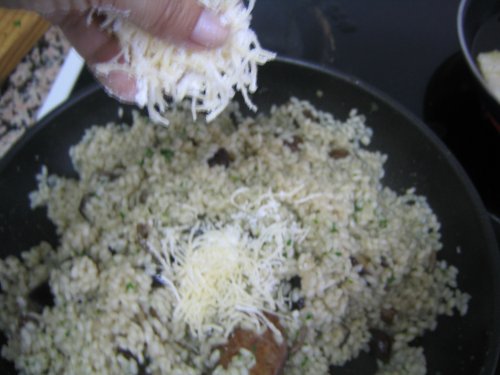 Y ya al final añadimos el queso rallado por encima, removemos y servimos en el momento. El arroz tiene que estar siempre meloso, ni seco ni caldoso.